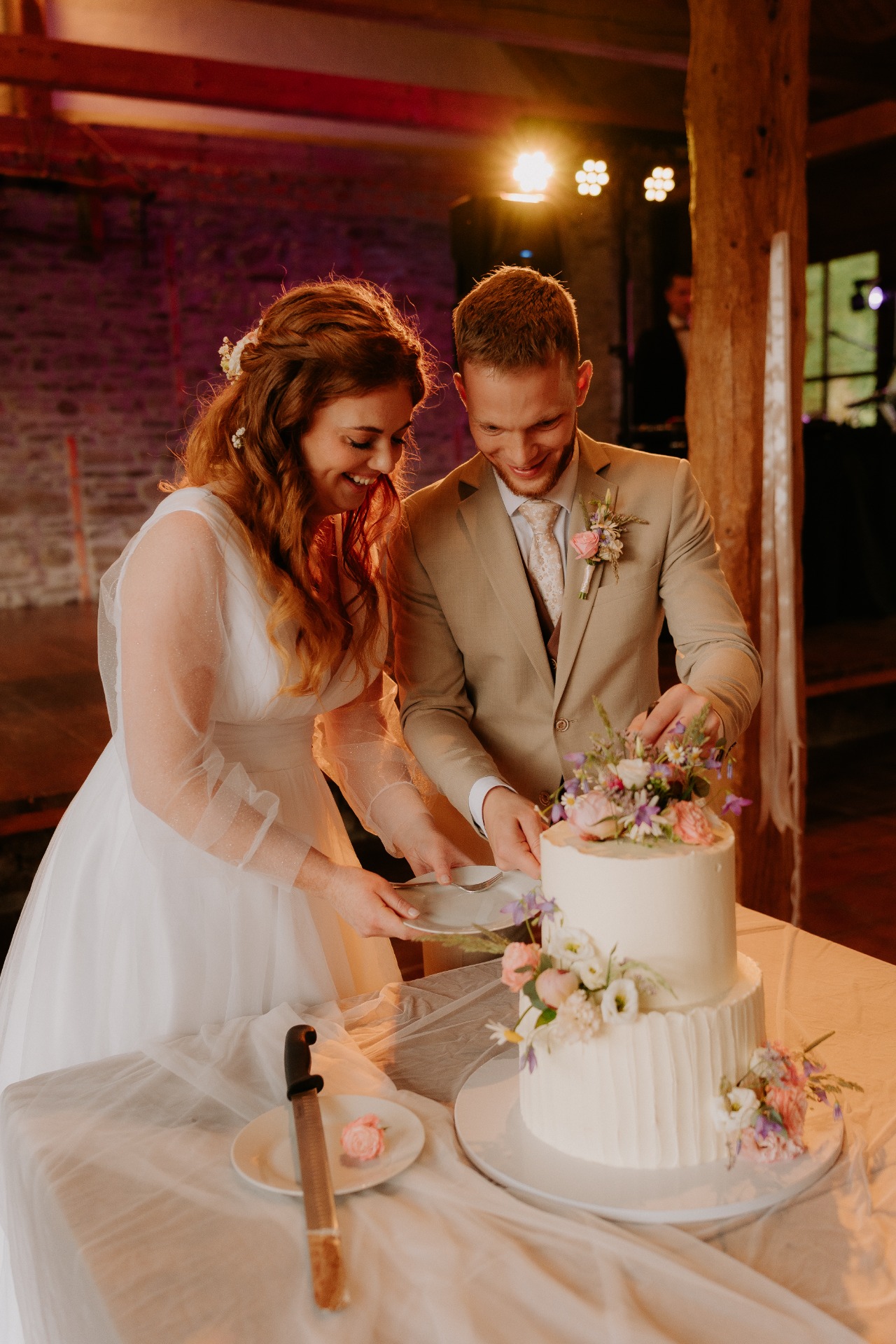 Krájení dortu se obvykle koná po hlavním chodu, před otevřením sladkého baru. Novomanželé společně nakrojí dort a prvním kouskem se mohou symbolicky navzájem nakrmit.