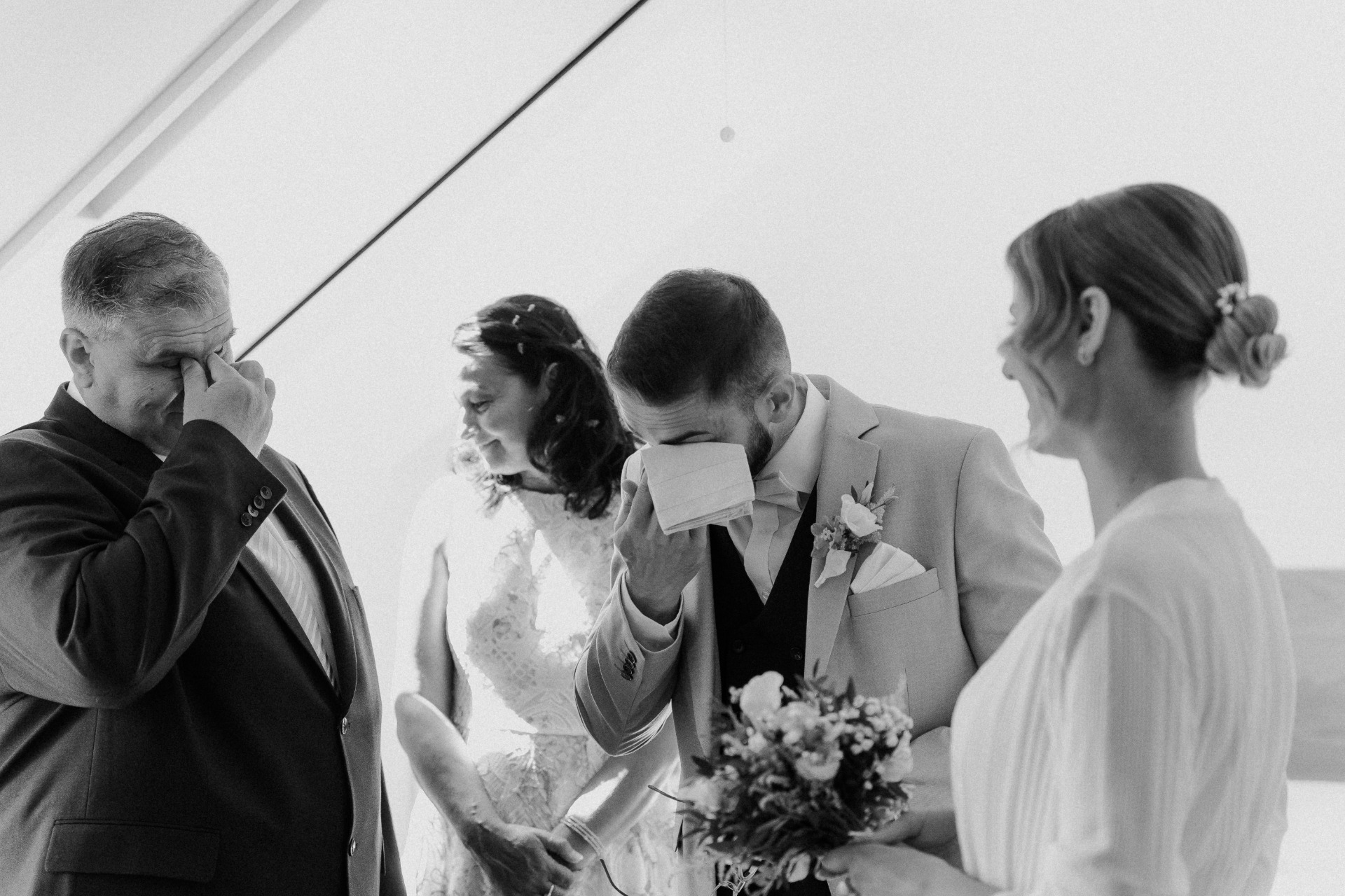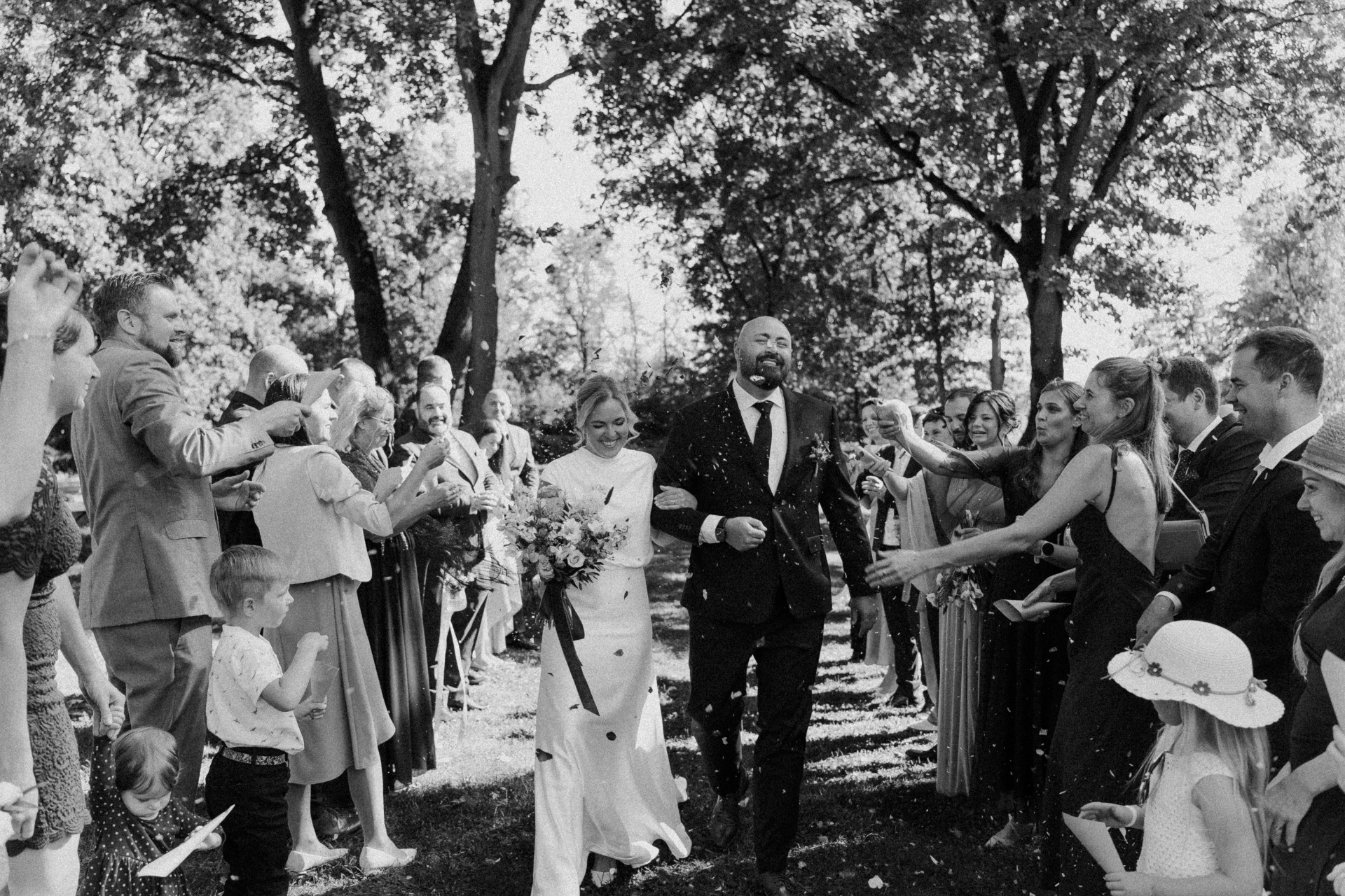 Kdy? Tady je za mě jednoznačná odpověď – ihned po obřadu a to z praktického důvodu – všichni hosté jsou ještě na jednom místě, nemusíte je tedy znovu svolávat. Navíc jsou všichni ještě upravení, svěží a formálně oblečení. Nejvíc se mi osvědčilo mít od páru seznam skupinek s přesně vyjmenovanými členy rodiny/kamarády, abychom na nikoho zásadního nezapomněli a zároveň věděli jaká skupinka se už fotila a jaká ne. Nejdříve začínám velkou skupinkou se všemi svatebčany a poté jednotlivé skupiny. Podle počtu hostů/skupinek může focení trvat zhruba 10 - 30 min.