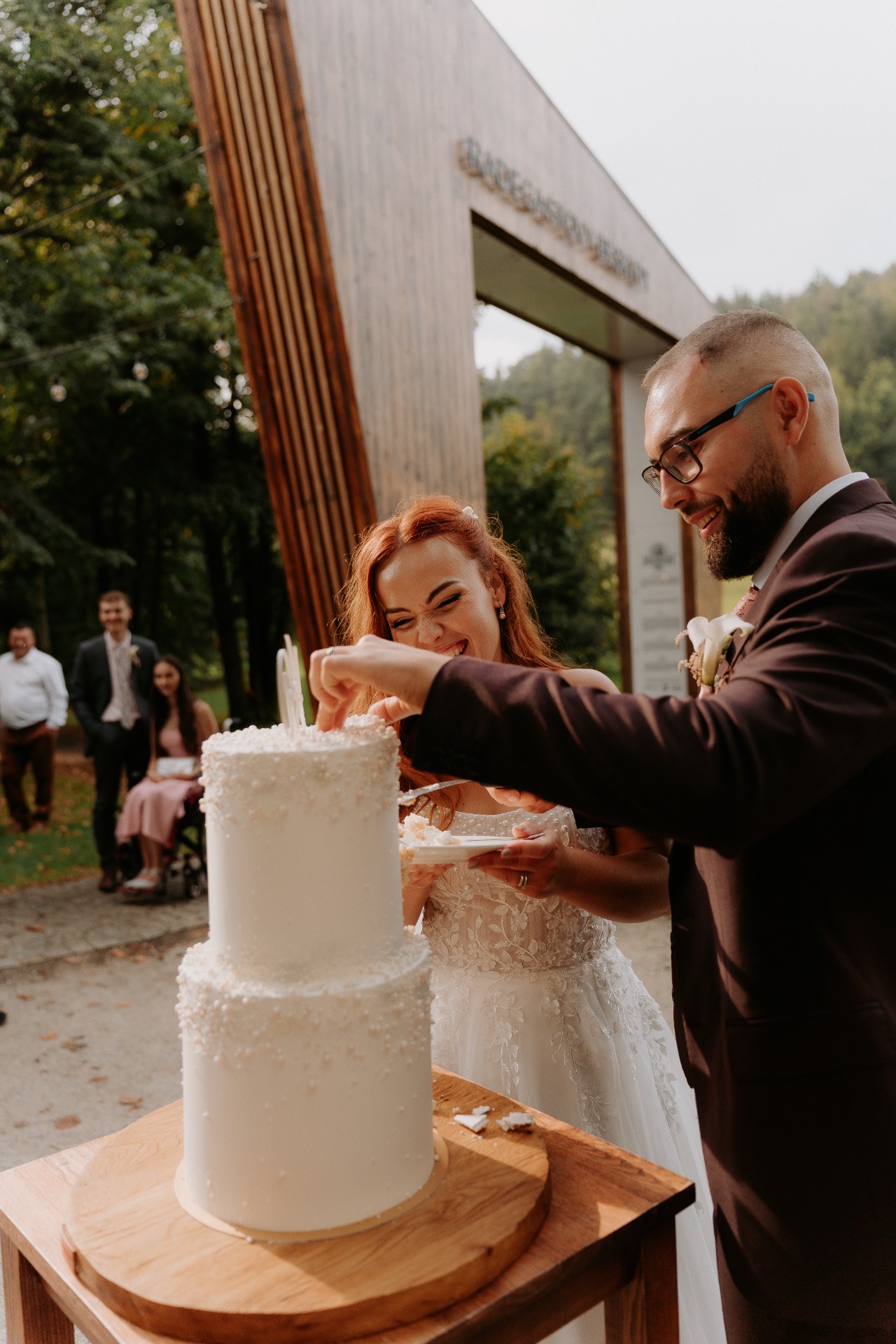 Krájení svatebního dortu